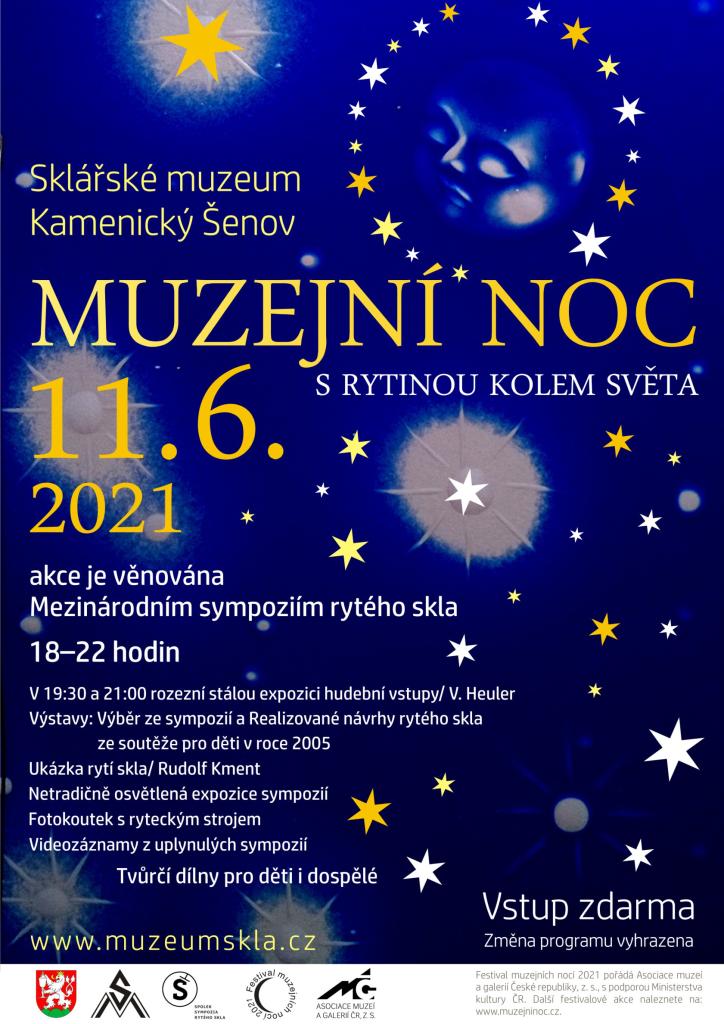 Muzejní noc věnovaná Mezinárodním sympoziím rytého skla, která se pravidelně konají v Kamenickém Šenově ve spolupráci Spolku sympozia rytého skla, Města Kamenický Šenov a sklářského muzea.